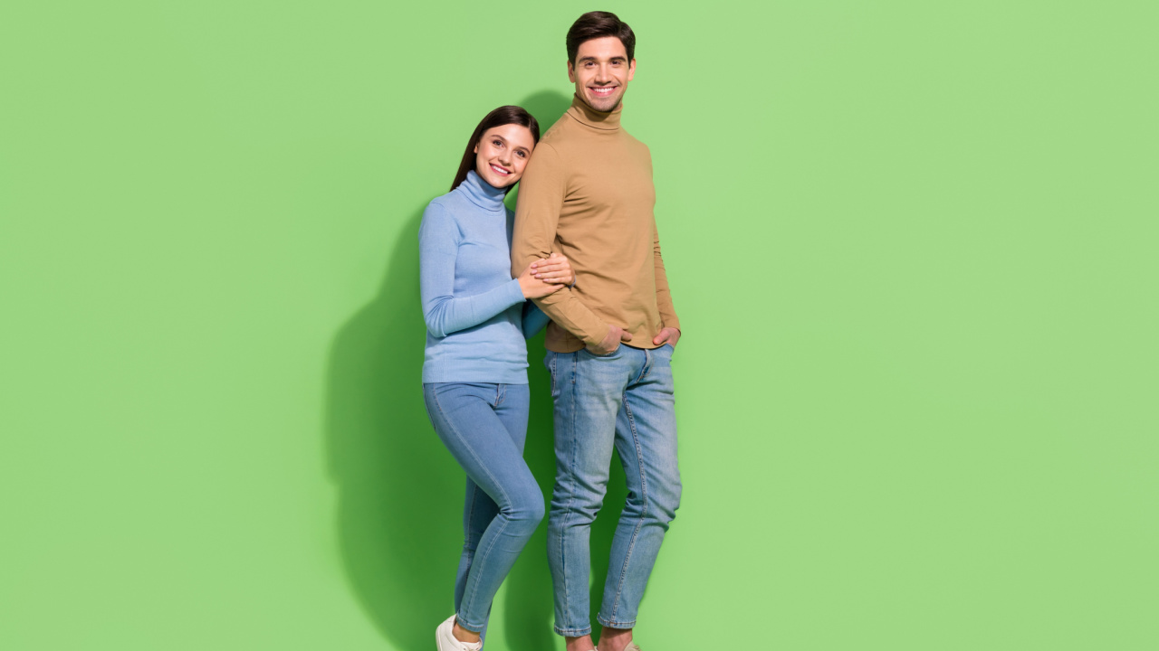 casal abraçado em fundo verde