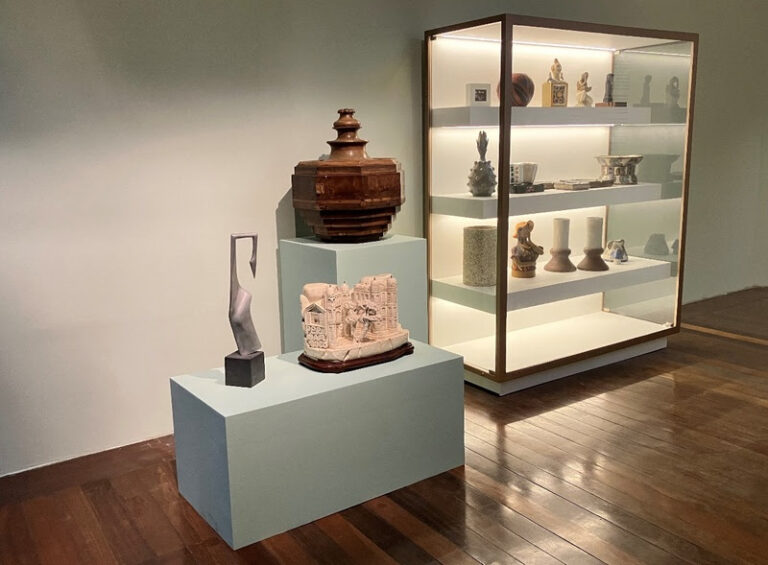 Entre os destaques da mostra estão o painel em madeira datado de 1975, do artista Corbiniano Lins, e a escultura “O casal” (1986), de Abelardo da Hora, além de obras em cerâmica de Francisco Brennand, que formam um ambiente de grande impacto visual.
