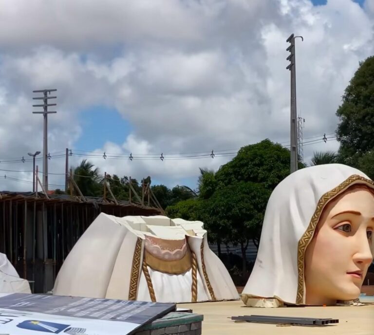 A Paróquia Santuário Nossa Senhora de Fátima, no bairro Pajuçara, zona Norte de Natal, divulgou neste sábado (29) imagens das peças que formam a imagem de 43 metros de Nossa Senhora de Fátima, escultura que será erguida no santuário e deve se tornar um ponto turístico-religioso da cidade.