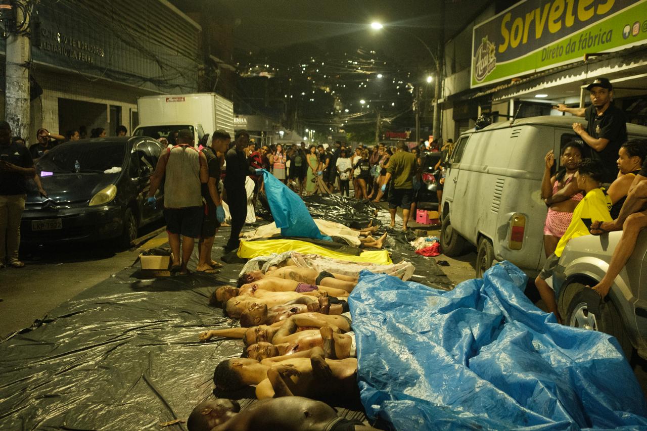 O cheiro acre de morte no ar, misturado ao do orvalho, se espalhava pela Praça São Lucas, onde termina o bairro da Penha e começam as favelas do complexo de mesmo nome, na Zona Norte do Rio. Já passava de meia-noite e meia. Em frente ao supermercado Inter, formava-se uma roda com cerca de duzentas pessoas, entre trabalhadores, estudantes, aposentados e pessoas ligadas ao tráfico. Diante deles, 25 cadáveres jaziam no chão, enfileirados um ao lado do outro, todos homens, todos também apontados pelos presentes como moradores da região.